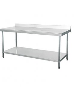 Các thiết bị inox chiếm một phần lớn trong các thiết bị nhà bếp như bàn inox, chậu rửa inox, giá kệ inox, tủ inox. Bàn inox có gáy với chất liệu inox 304, độ dày 1 – 1 ly2, có độ bền cao & dễ dàng tẩy rửa vệ sinh, có thể ứng dụng để làm bàn sơ chế, bàn trung gian, bàn soạn chia. Với gáy phía sau giúp dễ dàng thao tác với thực phẩm mà không bị rơi ra ngoài. Ngoài ra, với chân có thể điều chỉnh độ cao thuận tiện cho người sử dụng muốn tăng giảm độ cao của bàn tùy thuộc vào mục đích sử dụng cũng như giúp cho việc sắp xếp thiết bị dễ dàng hơn.